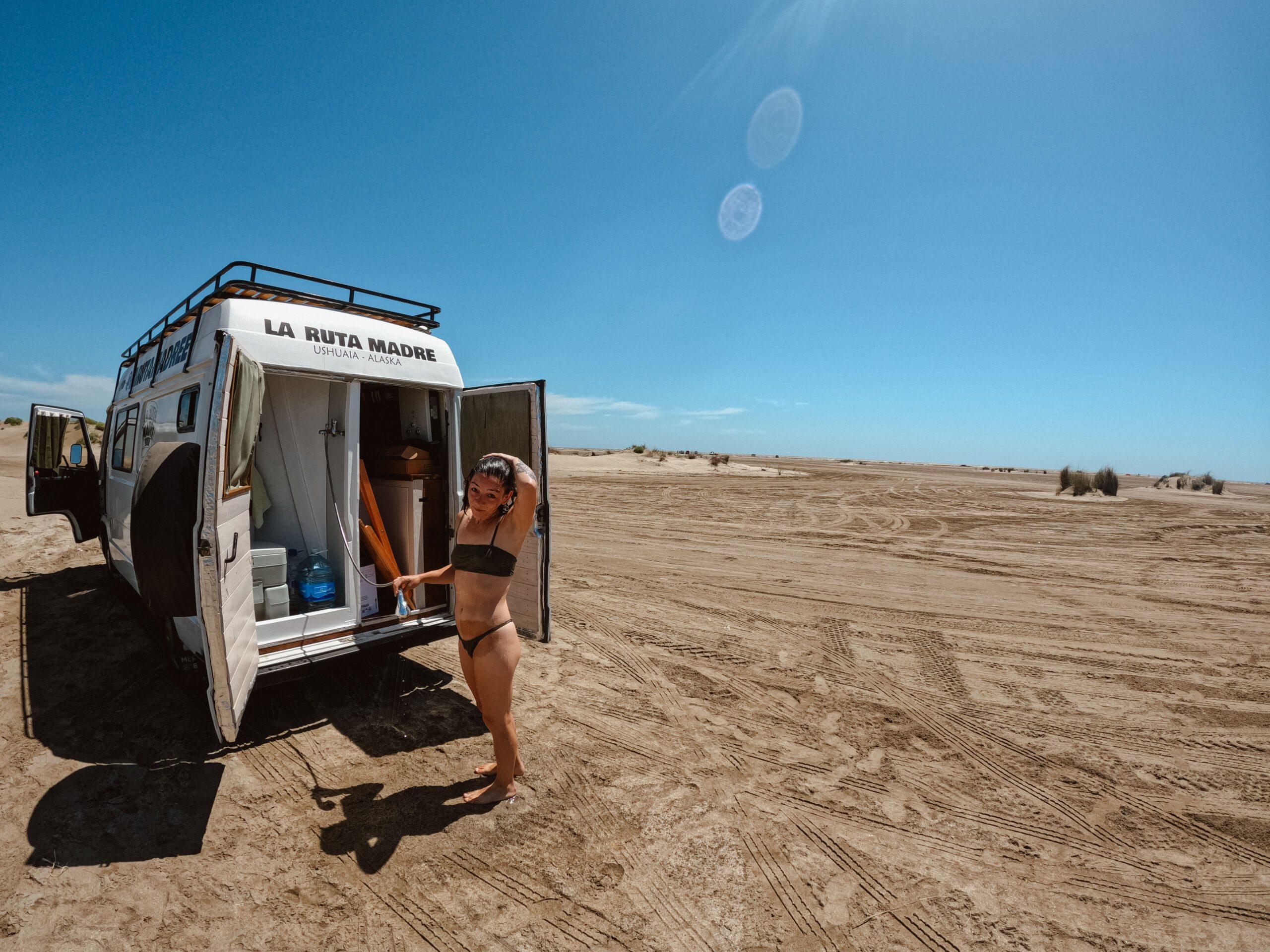 San Clemente del Tuyú fue nuestra primera vez para muchas cosas. Primera vez que pedimos a un desconocido si podíamos cargar nuestro tanque de agua con su manguera de patio; primera vez que vaciamos nuestro poti en una estación de servicio; primer canje por difusión con una excursión en cuatriciclos; primeros viajeros en otro vehículo con los que compartimos -Mona y Juan-.